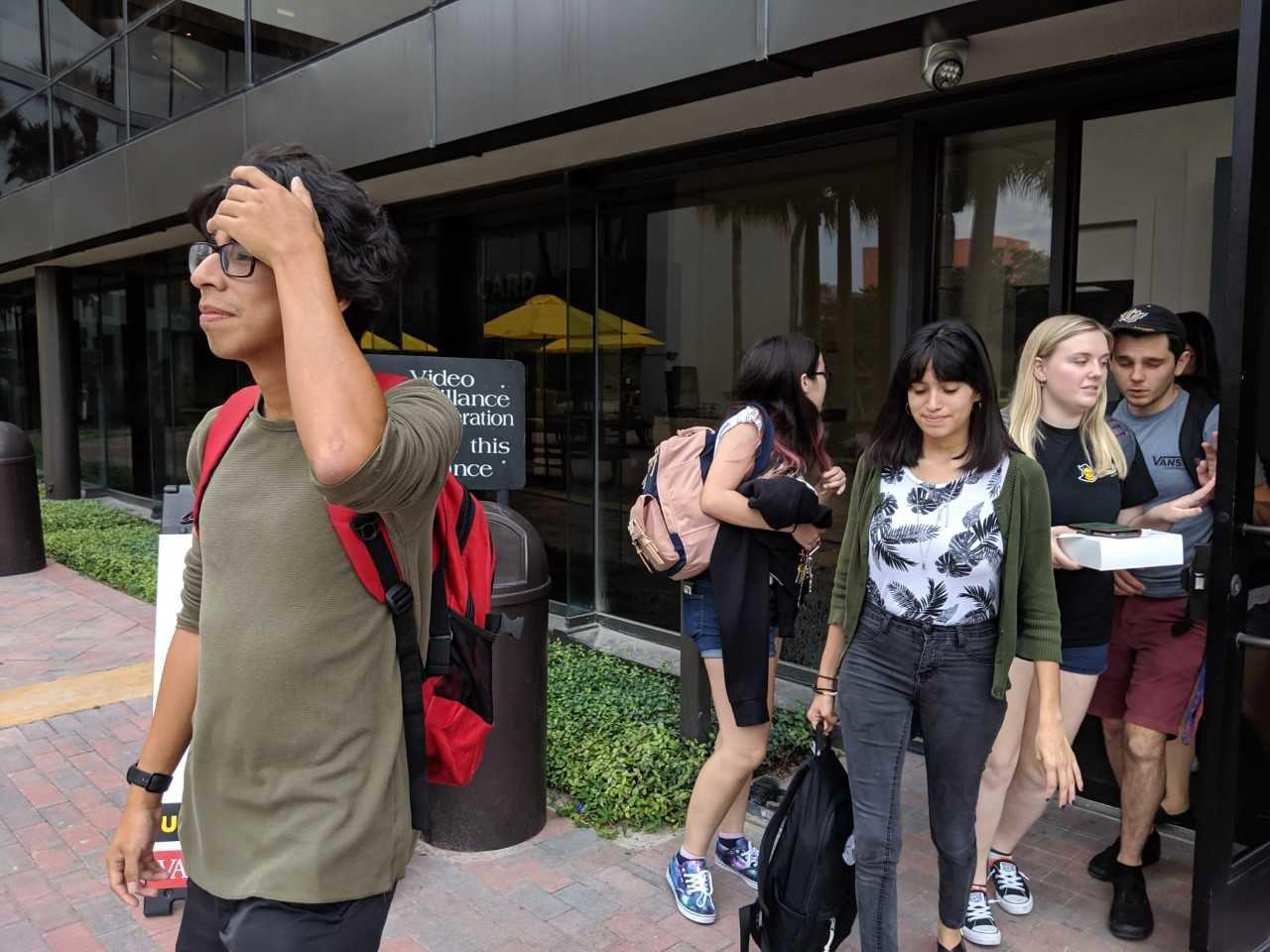 Game Design majors Sebastian Saabedera, 21, Julianne Truong, 20 and Rebecca Navas, 20, leave UCF’s Downtown campus wary of what the closures will mean for their electronics-based work. UCF has announced all campuses will be closed until Tuesday or further notice.