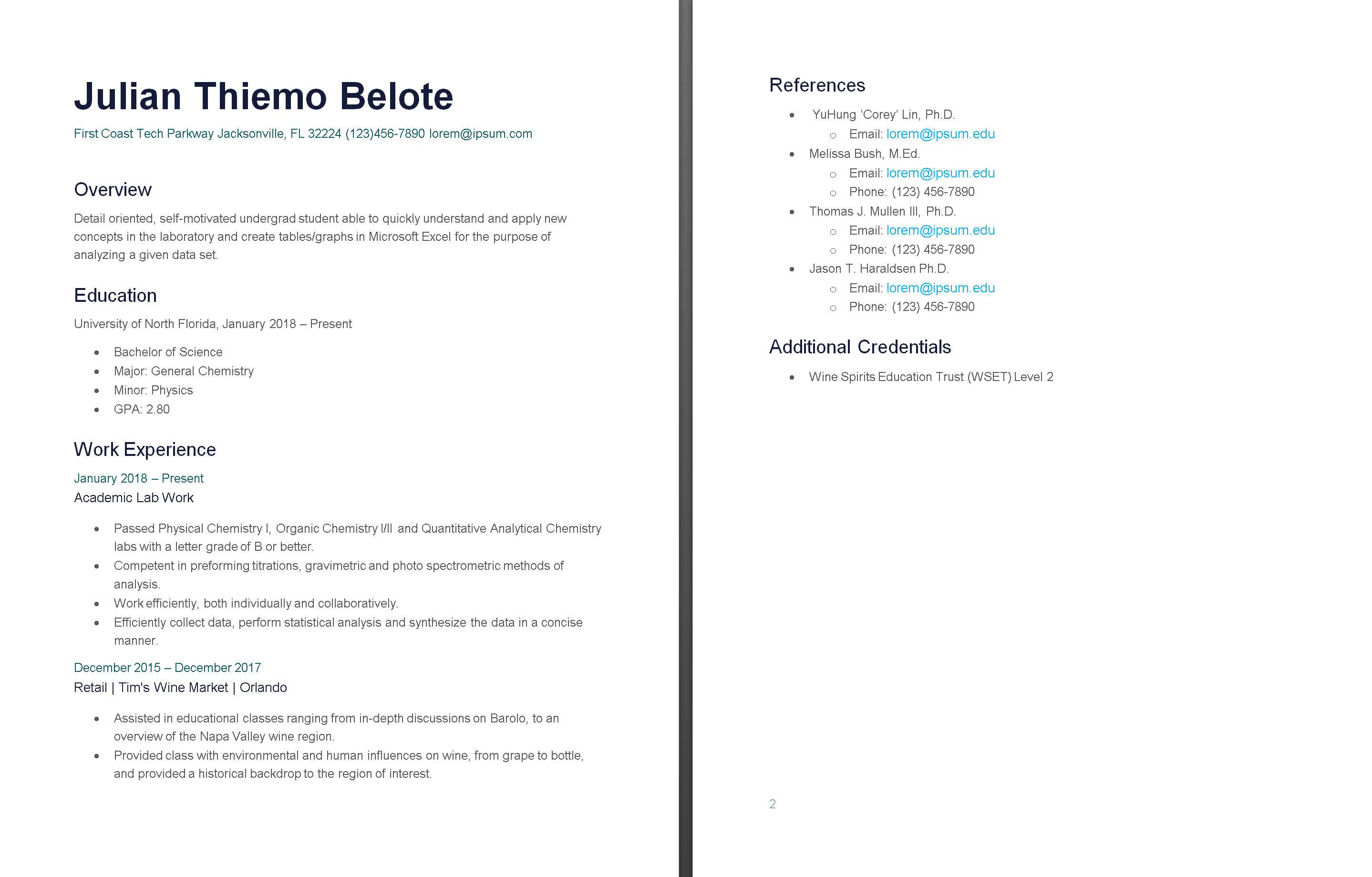 Thiemo is a friend of mine, and he asked for my help one summer as he was trying to find a job in his field of study, chemistry. Editing his resume was a matter of making the most with what he had at the time, that being an incomplete degree and only a handful of relevant experiences. Thiemo trusted me to take his resume and to do whatever I wanted to do with it.